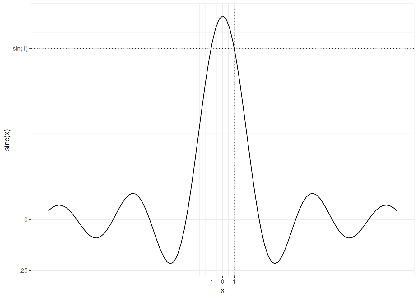 \[ \forall t \in \mathbb{R} \setminus[-1,1], \qquad \frac{\sin(t)}{t} \leq \sin(1) \leq \frac{6}{7}\, . \]