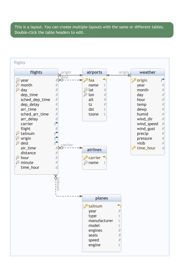 ‘carrier’ ‘tailnum’ ‘origin’ ‘dest’ |